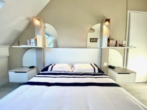 Ce projet témoigne de la capacité de Louarn Intérieurs, entreprise familiale basée à Lorient, à concevoir des aménagements intérieurs sur mesure dans le Morbihan, où confort, esthétisme et praticité s’accordent parfaitement.
