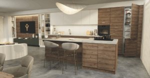 L’implantation en L offre une circulation fluide et une ergonomie parfaite, adaptée aux besoins du quotidien.