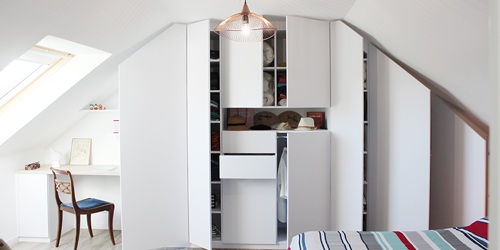 Une bibliothèque qui se fait discrète ? La meilleure option pour intégrer plusieurs fonctions à une pièce. Un bureau dans le salon, un coin lecture dans la salle à manger ? Rien n’est impossible avec les solutions astucieuses des conseillers Louarn.